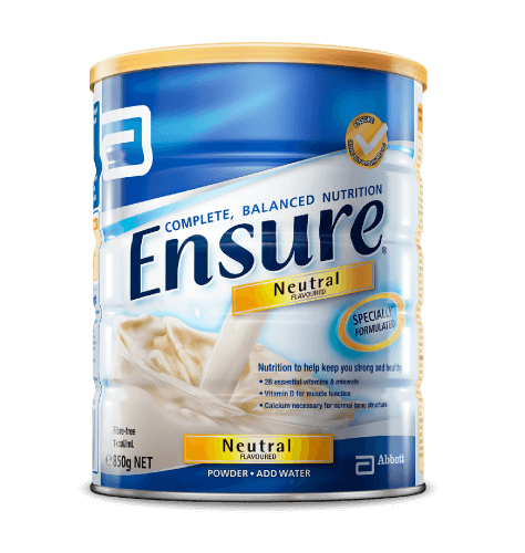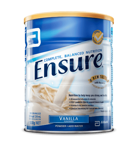 References: 1. Wiertsema SP, et al. Nutrients. 2021 Mar 9;13(3):886. 2. Ensure® product Label. 3. Monash University. Dietary Fibre And Natural Prebiotics For Gut Health: FAQs. Available at: https://www.monash.edu/medicine/ccs/gastroenterology/prebiotic/faq#3. Accessed: April 2023. 4. Slavin J. Nutrients. 2013;5(4):1417–35. 5. Harvard School of Public Health. The Nutrition Source – Vitamin A. Available at: https://www.hsph.harvard.edu/nutritionsource/vitamin-a/. Accessed: May 2023. 6. Harvard School of Public Health. The Nutrition Source – Vitamin B. Available at: https://www.hsph.harvard.edu/nutritionsource/vitamins/vitamin-b/. Accessed: May 2023. 7. Harvard School of Public Health. The Nutrition Source – Folic acid. Available at: https://www.hsph.harvard.edu/nutritionsource/folic%20acid/. Accessed: May 2023. 8. Ensure® Plus Strength Product Label. 9. Deutz NE, et al. Clin Nutr. 2016;35(1):18–26. 10. Ekinci O, et al. Nutr Clin Pract. 2016; 31(6): 829–835. 11. Malafarina V, et al. Maturitas. 2017;101:42–50. 12. Ensure® TwoCal HN Product Label. 13. Ensure® Plus Product Label. 14. Harvard School of Public Health – The Nutrition Source (Vitamin D). Available at: https://www.hsph.harvard.edu/nutritionsource/vitamin-d/ Accessed: April 2023. 15. Nutrient reference values for Australia and New Zealand (Vitamin D). Available at: https://www.eatforhealth.gov.au/nutrient-reference-values/nutrients/vitamin-d. Accessed: April 2023. 16. Puertollano MA, et al. Curr Top Med Chem. 2011;11(14):1752–66. 17. Walsh NP. Sports Med 2019;49(Suppl 2):S153-S168. 18. Harvard School of Public health – The Nutrition Source (Zinc). Available at: https://www.hsph.harvard.edu/nutritionsource/zinc/. Accessed: April 2023. 19. Mayo Clinic Health System – Support your immune function with good nutrition. Available at: https://www.mayoclinichealthsystem.org/hometown-health/speaking-of-health/support-your-immune-function-with-good-nutrition Accessed: April 2023. 20. Prietl B et al. Nutrients. 2013;5(7):2502–21.