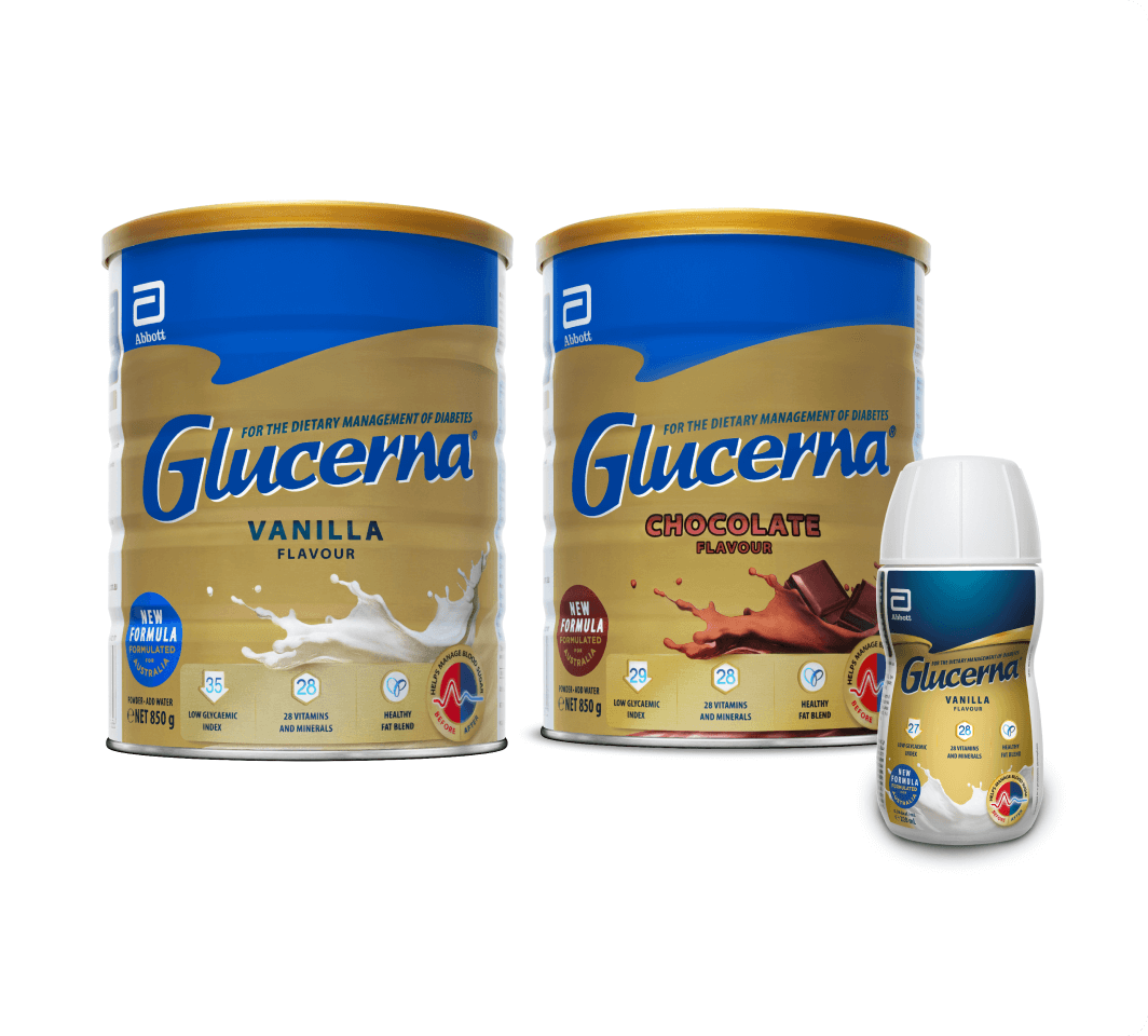 *Glucerna is formulated for people with prediabetes, diabetes and gestational diabetes, as part of a diabetes management plan (including diet and exercise).1