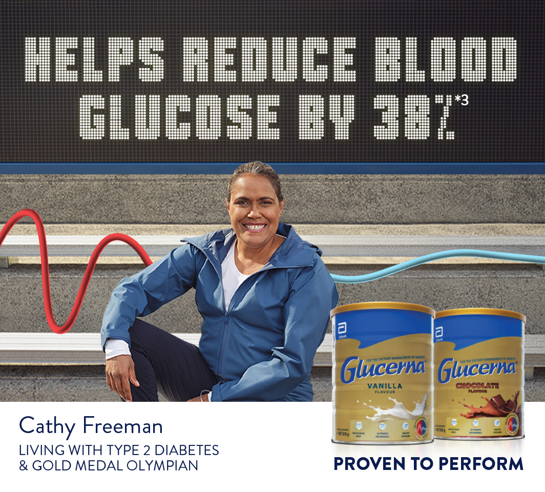 Glucerna has partnered with Cathy Freeman, a much-loved, former gold medal Olympian and Australian icon. Everyone knows Cathy as an athlete, but they may not know she’s been living with Type 2 Diabetes.