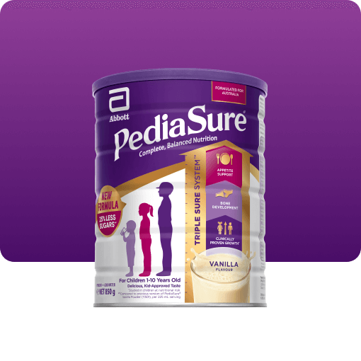 References: 1. PediaSure® Powder Product Label. 2. Stoltzfus RJ, et al. J Nutr. 2004;134:348–56. 3. Krebs NF, et al. Am J Dis Child. 1984;138:270–73. 4. Huynh DTT, et al. J Hum Nutr Diet. 2015;28:623–35. 5. Huynh DTT, et al. J Nutr Sci. 2016;5:e20. 6. Schrezenmeir J, et al. Clin Pediatr. 2004;43:239. 7. Fisberg M, et al. lnt Pediatr. 2002;17(4):216–22. 8. Ensure® Powder Product Label. 9. Abbott Data on File. 10. Glucerna® Powder Product Label. 11. Devitt AA, et al. J Diabetes Res Clin Met. 2012;1(1):20. 12. Dávila LA, et al. Nutrients. 2019;11(7):1477. 13. Mottalib A, et al. Nutr Diabetes. 2019;9(1):26. 14. Peng J, et al. Br J Nutr. 2019;121(5):560–566.