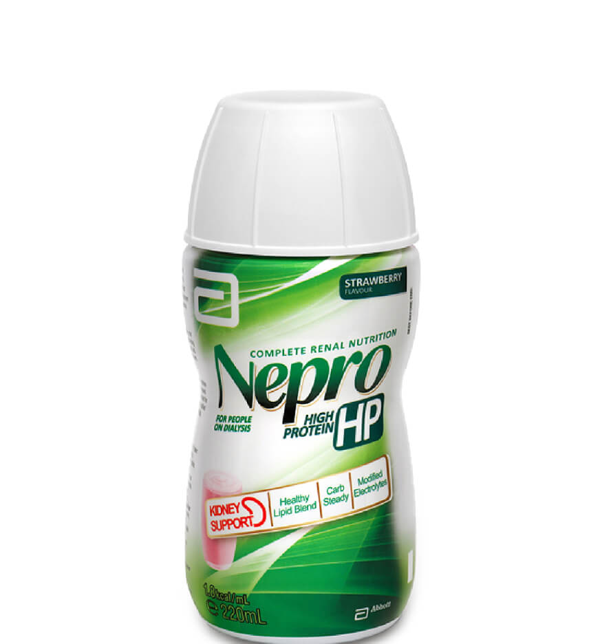 Nepro HP (High* Protein) 1.8 kcal/mL is high in energy and protein (17.8 g per bottle).1 It provides complete renal nutrition to help improve nutrition status and replace protein lost during dialysis.1 With a low Glycaemic Index (GI) of 35, Nepro HP helps manage blood glucose levels making it suitable for people who have both chronic kidney disease (CKD) and diabetes.2