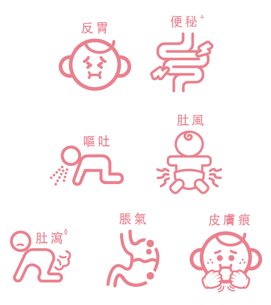 +指食物不耐受風險、乳糖不耐受及大便乾硬。