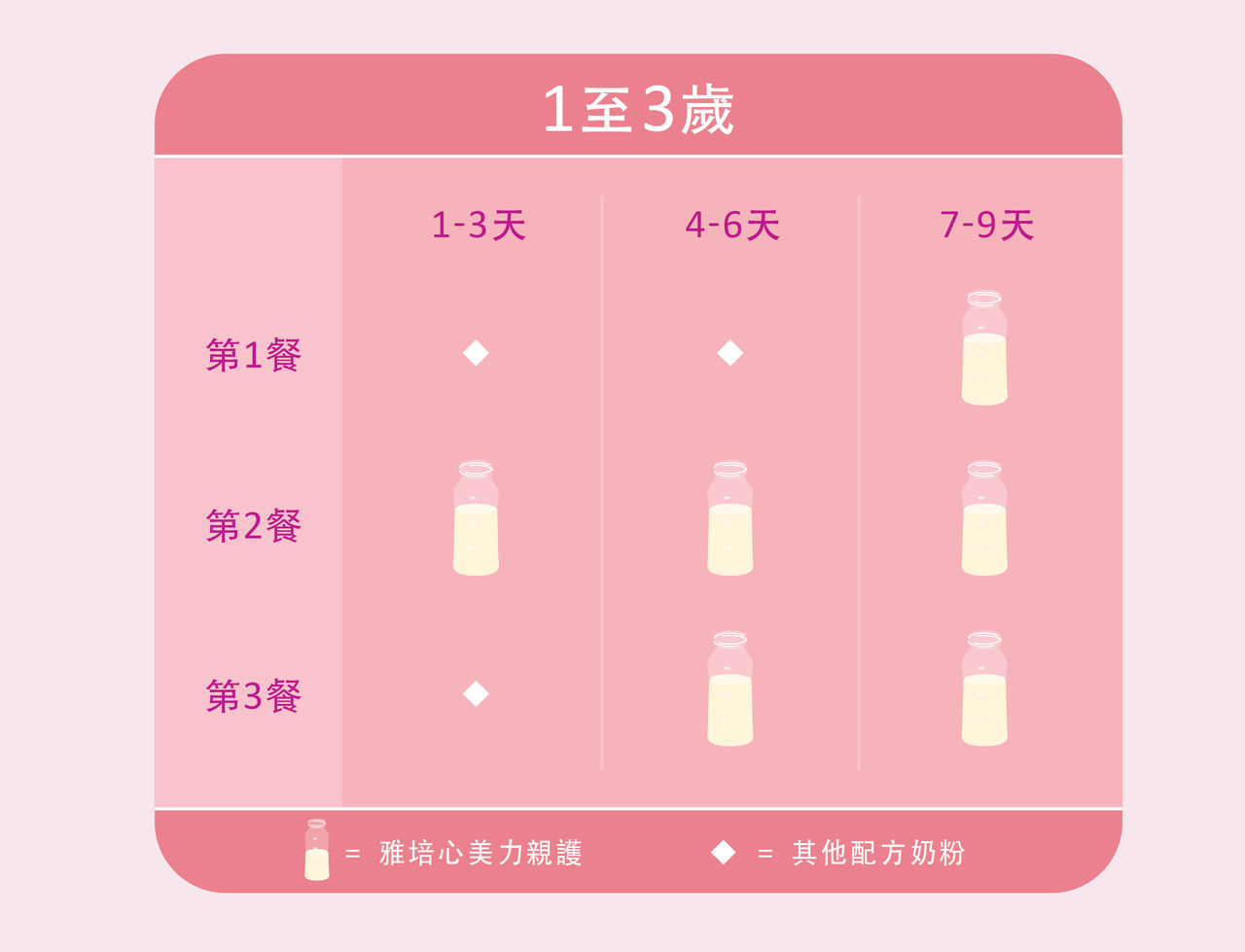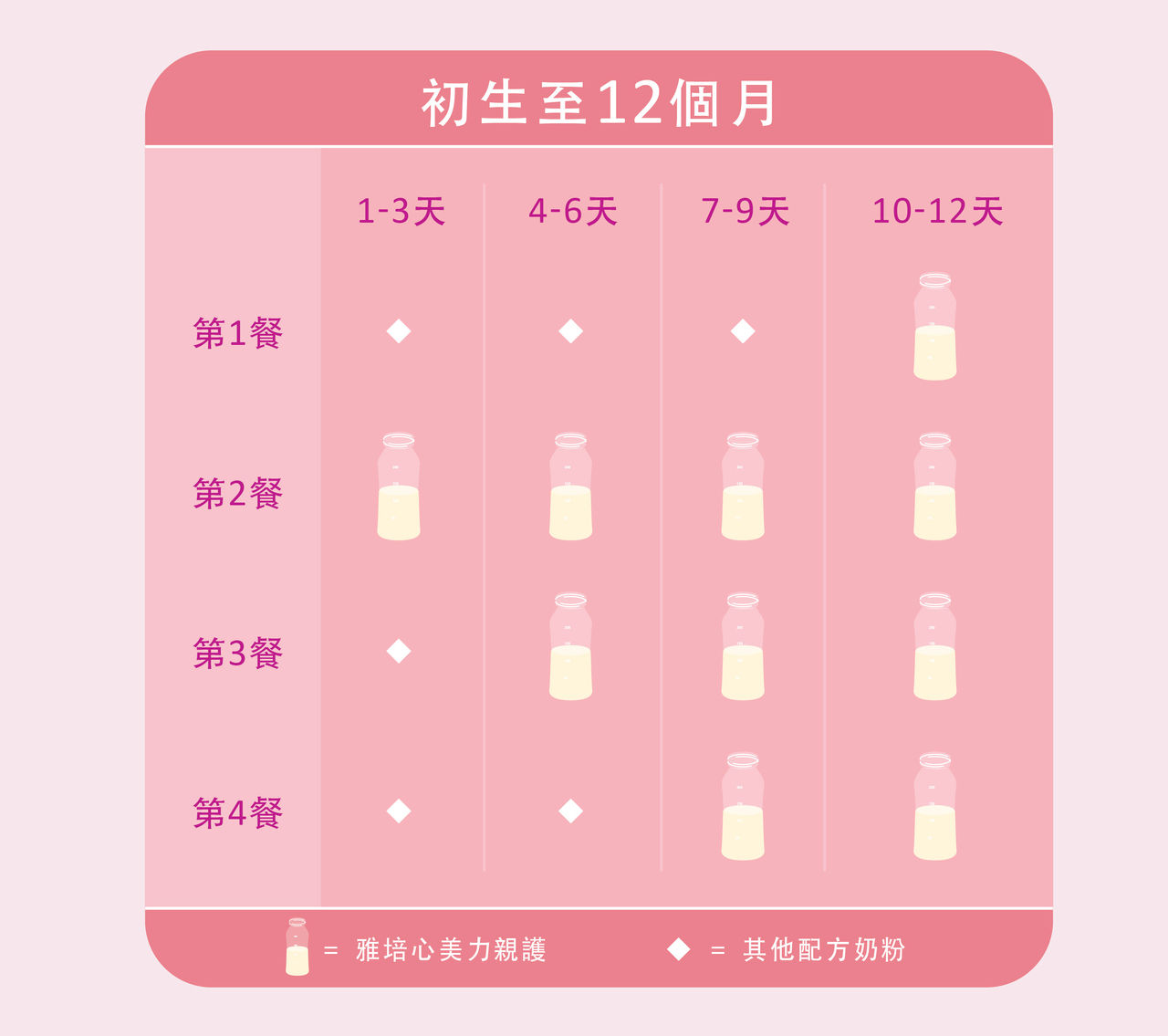 請遵循醫生的餵哺份量及次數意見。以上只是建議餵哺份量。每個孩子都是不一樣的。