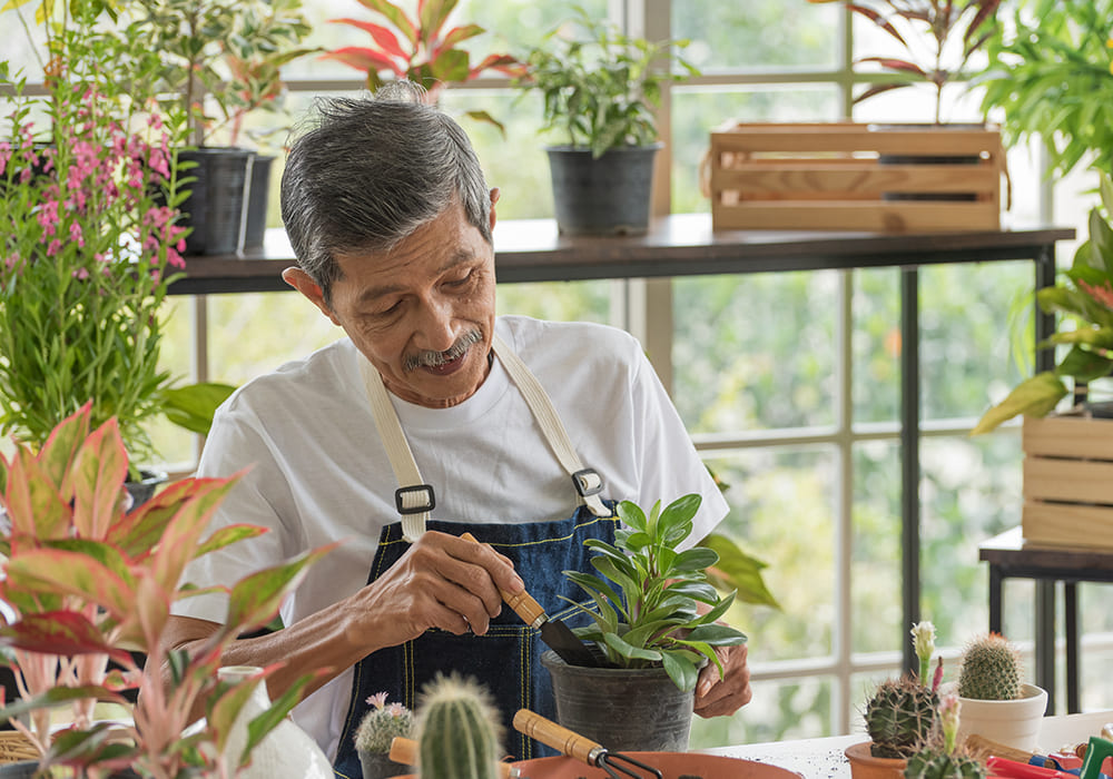 Bermain tanah dan bercocok tanam bisa jadi kegiatan untuk lansia yang melatih berbagai bagian ototnya. Sebab, bercocok tanam membutuhkan gerakan berbagai macam otot, seperti menggali tanah, memotong rumput, memotong ranting pohon, dan lainnya.