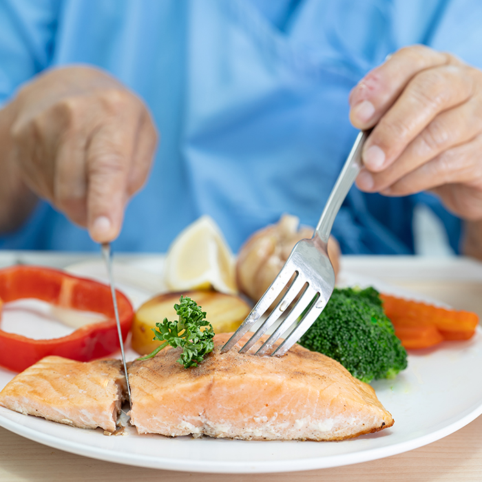 Untuk orang dewasa berusia 19 hingga 70 tahun: 600 unit internasional (IU) vitamin D per hari. Untuk orang dewasa berusia 71 tahun ke atas: 800 IU vitamin D per hari. Sumber vitamin D termasuk ikan berminyak (salmon, trout, whitefish, dan tuna), jamur, telur, makanan yang diperkaya (susu dan sereal), dan paparan sinar matahari. Pertimbangkan konsumsi suplemen, terutama bagi individu dengan paparan sinar matahari yang terbatas.