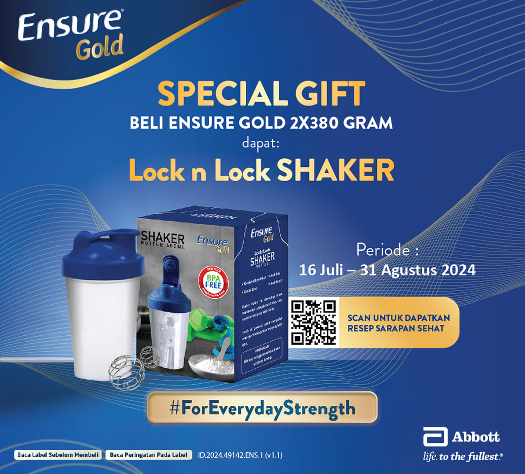 Yuk, beli Ensure Gold 2x380g dan dapatkan hadiah 1 Minute Shaker untuk dukung kamu jaga kekuatan sepanjang hari!