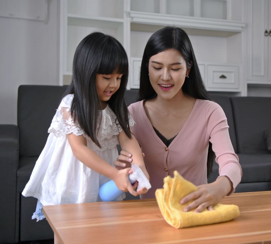 Sementara itu, anak-anak yang lebih besar, mulai usia 4-5 tahun, bisa diberikan tanggung jawab merapikan tempat tidur, membersihkan meja, menyedot debu di lantai, menyiram tanaman, serta mencuci piring atau gelas plastik.