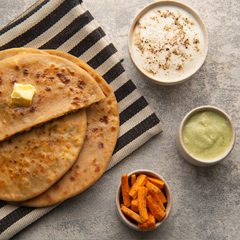 What gives this raita a nutty crunch is protein-rich roasted peanuts. Pairs perfectly with vegetable parathas, making it a wholesome meal.