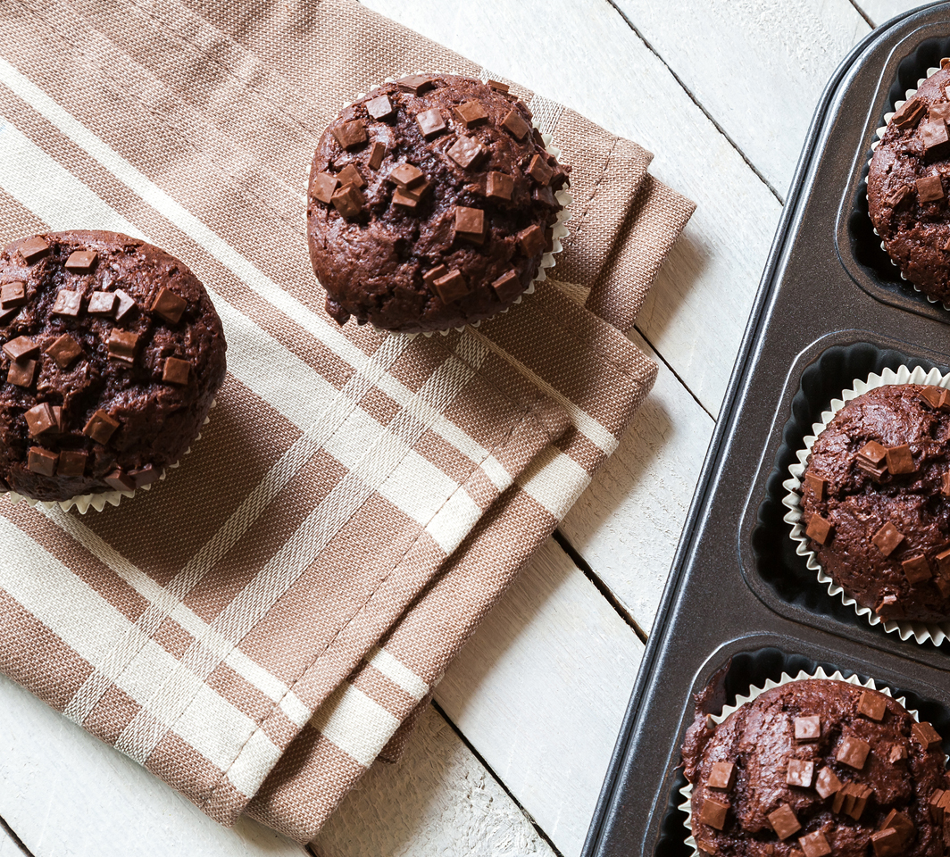 Soft muffins made from baking chocolate, milk, butter, eggs, flour, cocoa, salt, and topped with PediaSure® chocolate icing.