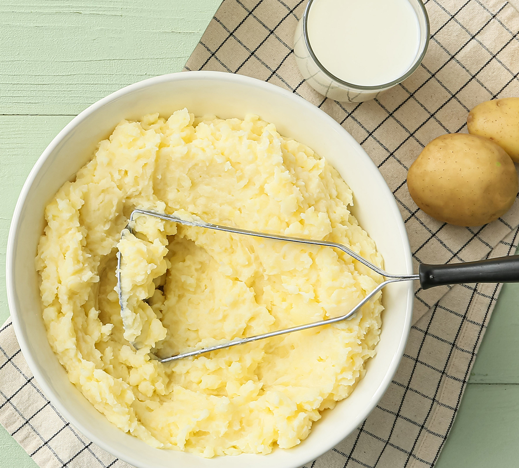 Creamy mashed potatoes and sweet potatoes enriched with PediaSure® vanilla, butter, and cream.