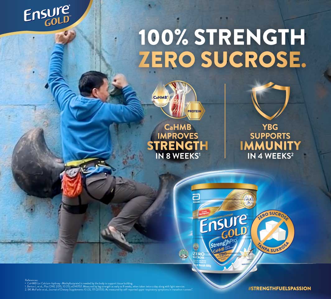 *50% less sugars (4.0g/100ml) as compared to Ensure® Gold™  Vanilla previous formulation (8.0g/100ml) sugars.​