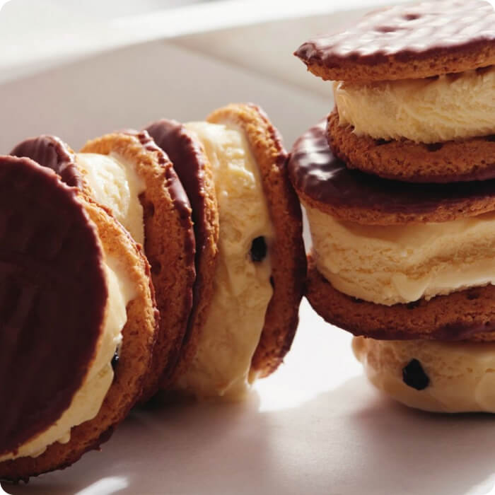 Ice cream sandwiches are a popular way to enjoy classic vanilla ice cream. We’ve used raisins and chocolate wheaten biscuits to add fibre, flavour and texture.*