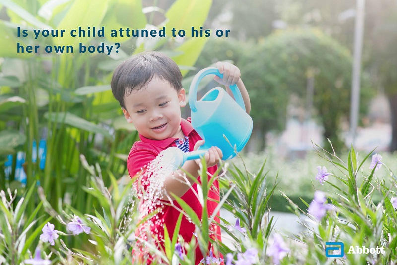 So your child can doodle stick figures on a colouring block. Can your child describe shapes to you with hand gestures or recognise his or her way around the house? As your child grows up, he or she needs to sense where things are in space, predict motion, and sense comparative dimension of objects.