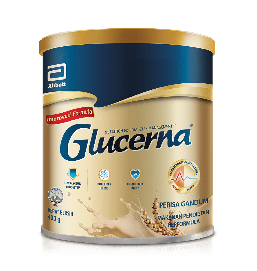 2. Glucerna terbukti mengurangkan turun naik paras glukosa, apabila digunakan sebagain pengganti sarapan sebagai sebahagian daripada intervensi gaya hidup (Peng et al. 2019)