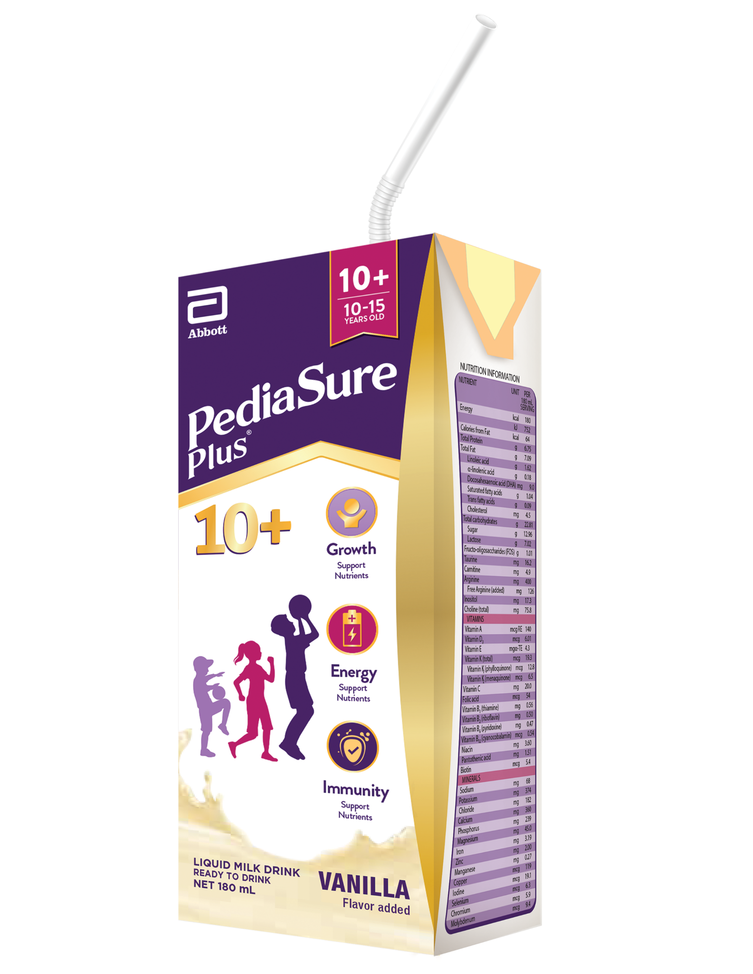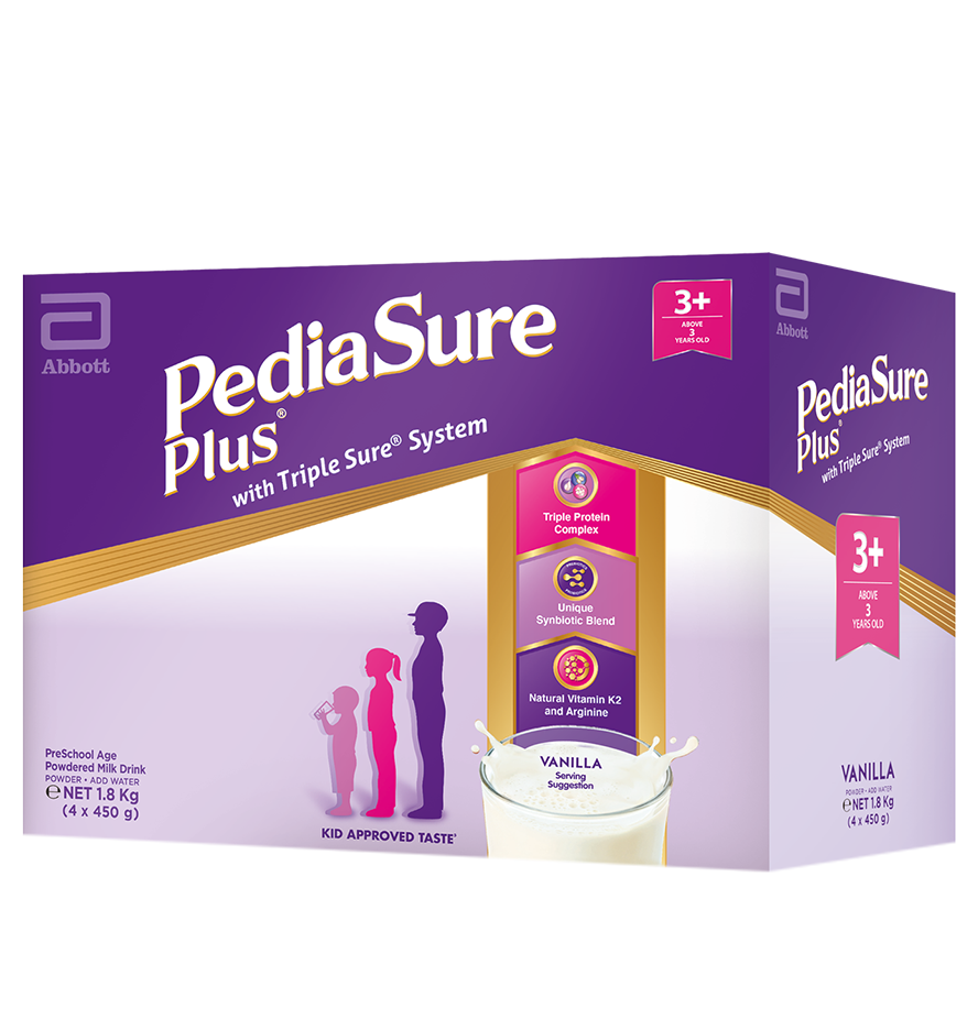 Drinking PediaSure Plus® can help fill these gaps and help your child catch up on their weight and height gain (with three balanced meals and exercise).