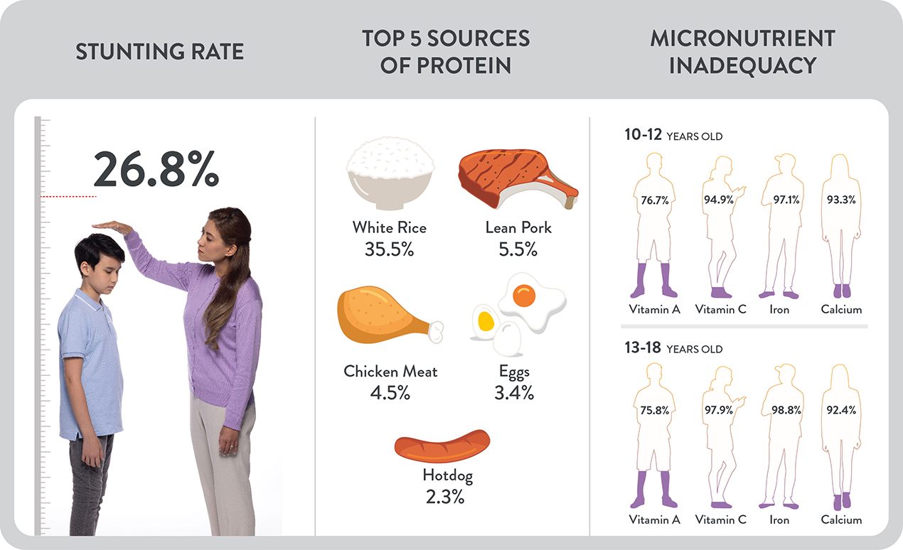 Did you know that in the Philippines, 26.8% of adolescents are stunted? More than half have protein inadequacy and more than 75% have micronutrient inadequacy*.