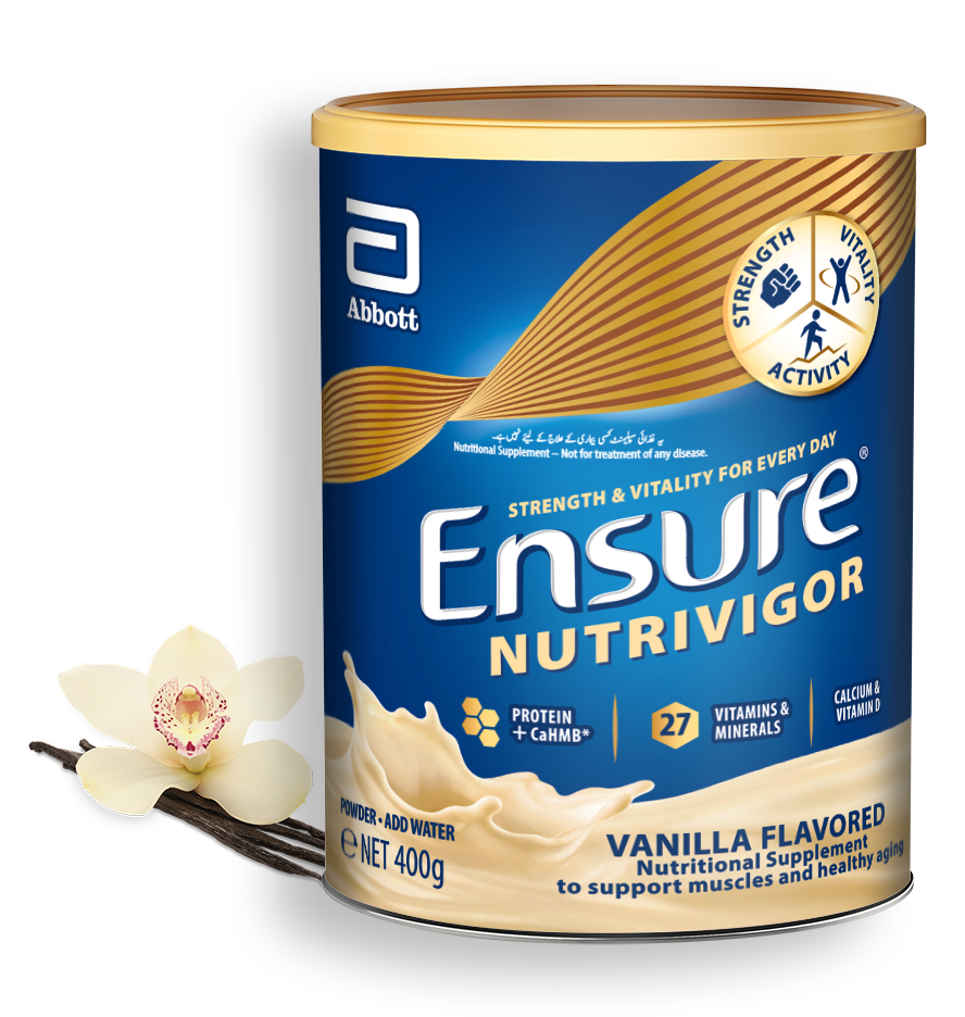 Ensure® Nutrivigor provides balanced nutrition with 23 essential vitamins, minerals, and HMB to support muscle health and recovery.