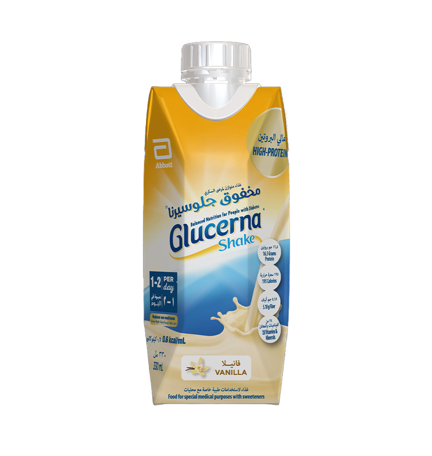 جلوسيرنا® شيك هو وجبة خفيفة ولذيذة أو يمكن اعتباره كبديل للوجبة الرئيسية لأنه مصمم للمساعدة في التحكم بنسبة السكر في الدم والتحكم بالجوع، كما يحتوي على كربوهيدرات يتم هضمها وامتصاصها ببطء مما يوفر إمداداً ثابتاً بالطاقة دون التسبب في ارتفاع مفاجئ في مستويات السكر في الدم.*