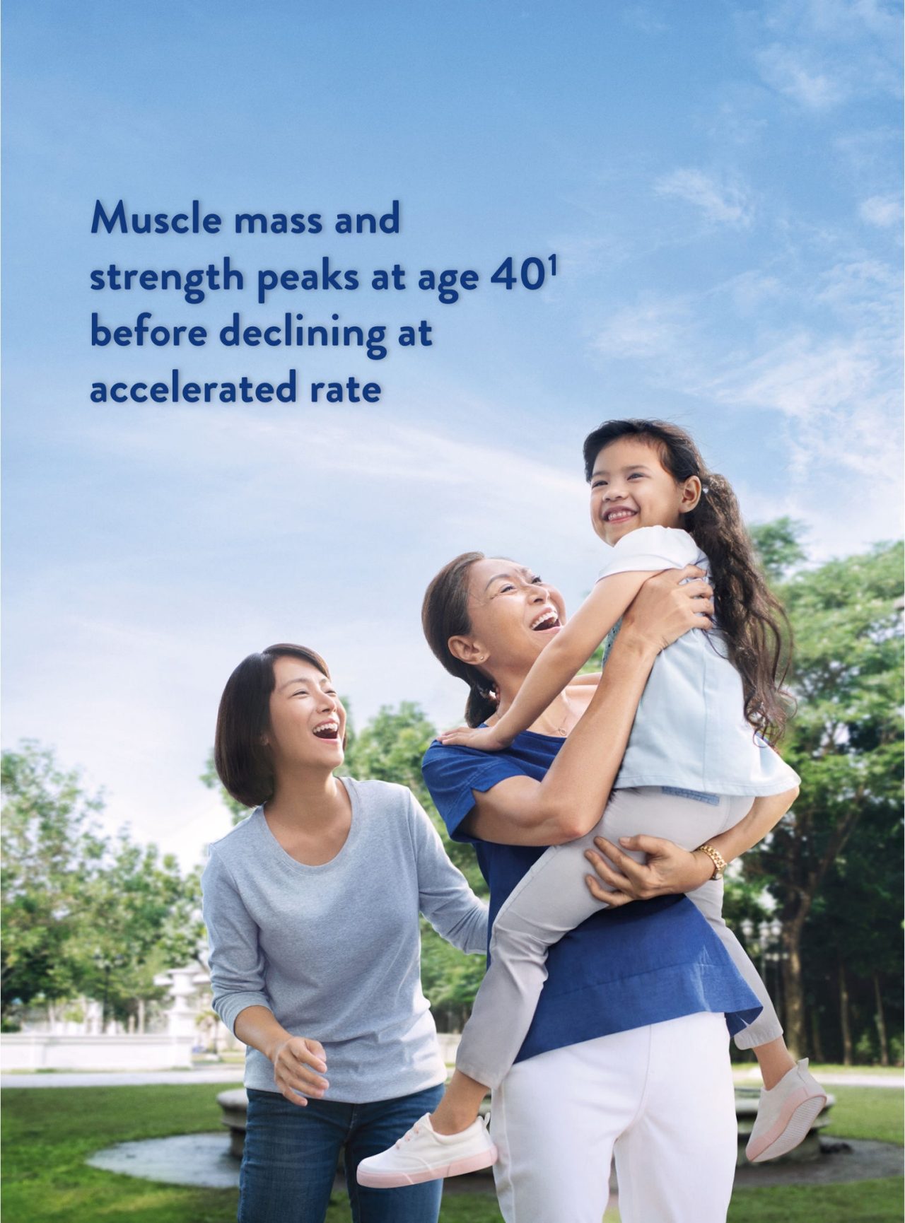 Did you know that our muscle mass and strength peaks at age 401 before declining at accelerated rate? One can lose up to 8% muscle mass per decade2. Additionally, muscle strength loss occurs 2 times faster than muscle mass loss every year3.