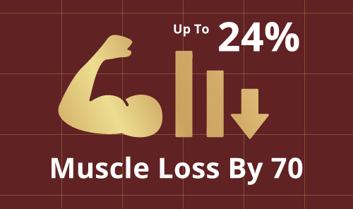 After 40, adults naturally lose about 8% of muscle every decade. At 70, the rate of muscle loss increases to about 15%. This means up to 24% of your muscles could be lost by 70 years old. 1