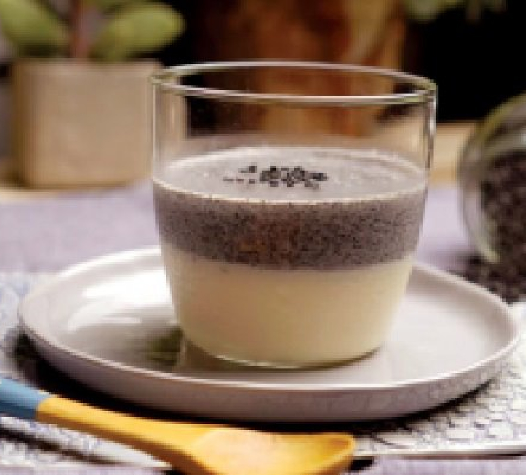 6. Blend the remaining Glucerna® mixture and black sesame seeds until smooth. Then pour into the same serving cup and refrigerate it for at least 4 hours or until set.