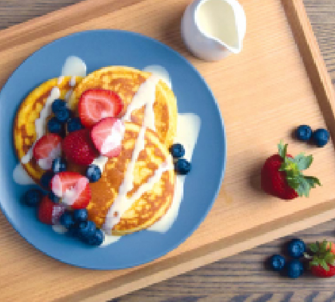 7. To make creamy vanilla sauce as topping, dissolve Glucerna® Triple Care powder in water. Serve hotcakes hot with fruit toppings and creamy sauce on the side.