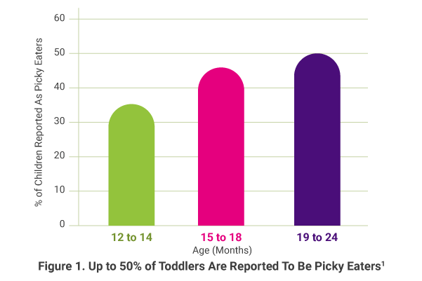 In fact, a study of eating behaviour in young children found that up to 50% of parents consider their children to be picky eaters (Figure 1). Another study found that picky eating persisted in some children through 9 years of age.1