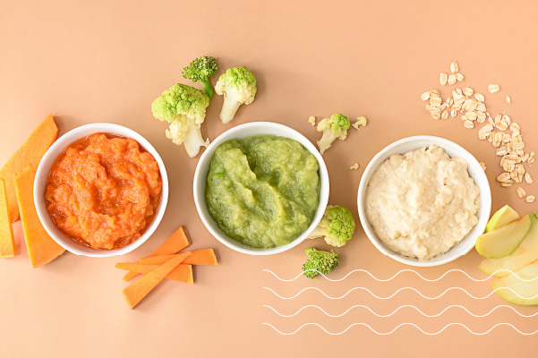 Introduce single-ingredient foods one at a time, every 2-3 days.2 Mashed banana, avocado, sweet potato, or softened, bite-sized bits of broccoli, cauliflower, or carrots are excellent options to start with.