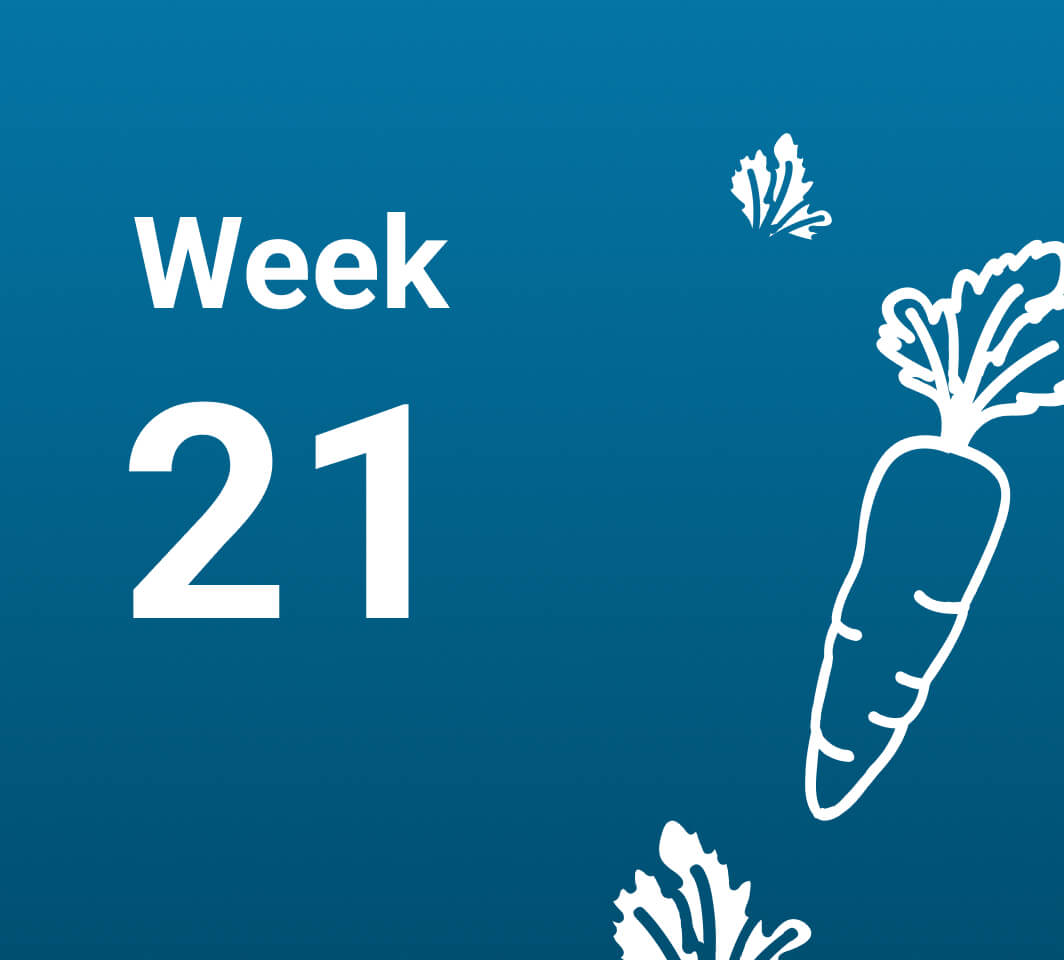 Don’t forget the iron! With your body hard at work producing red blood cells, at your 21st week of pregnancy, be sure you are getting at least 27 mg of iron each day to avoid the risk of anaemia.