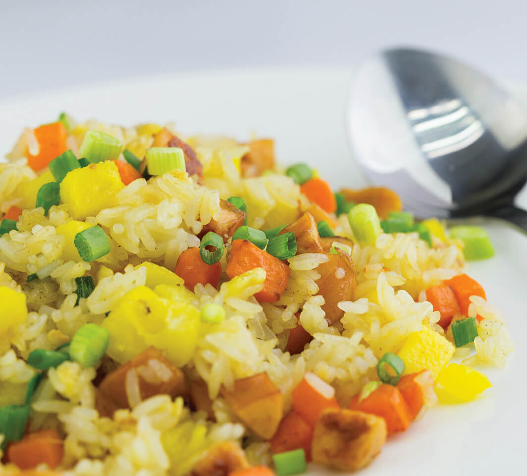 เมนูข้าวผัดเอนชัวร์ที่มีเอนชัวร์ กลิ่นวานิลลาเป็นส่วนผสมเพิ่มความอร่อยและเสริมโภชนาการให้กับเมนูนี้
