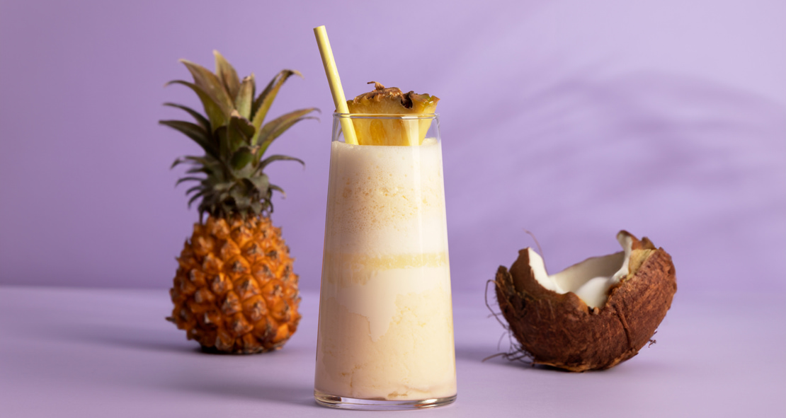 Trái dứa còn gọi là trái thơm trong cách nói của người miền nam. Món sinh tố mát lạnh ngọt ngào này lấy cảm hứng từ cocktail pina colada gợi nhắc những kỳ nghỉ ở miền nhiệt đới! Mùi vị lá bạc hà kèm theo mang lại sự tươi mát và sảng khoái!