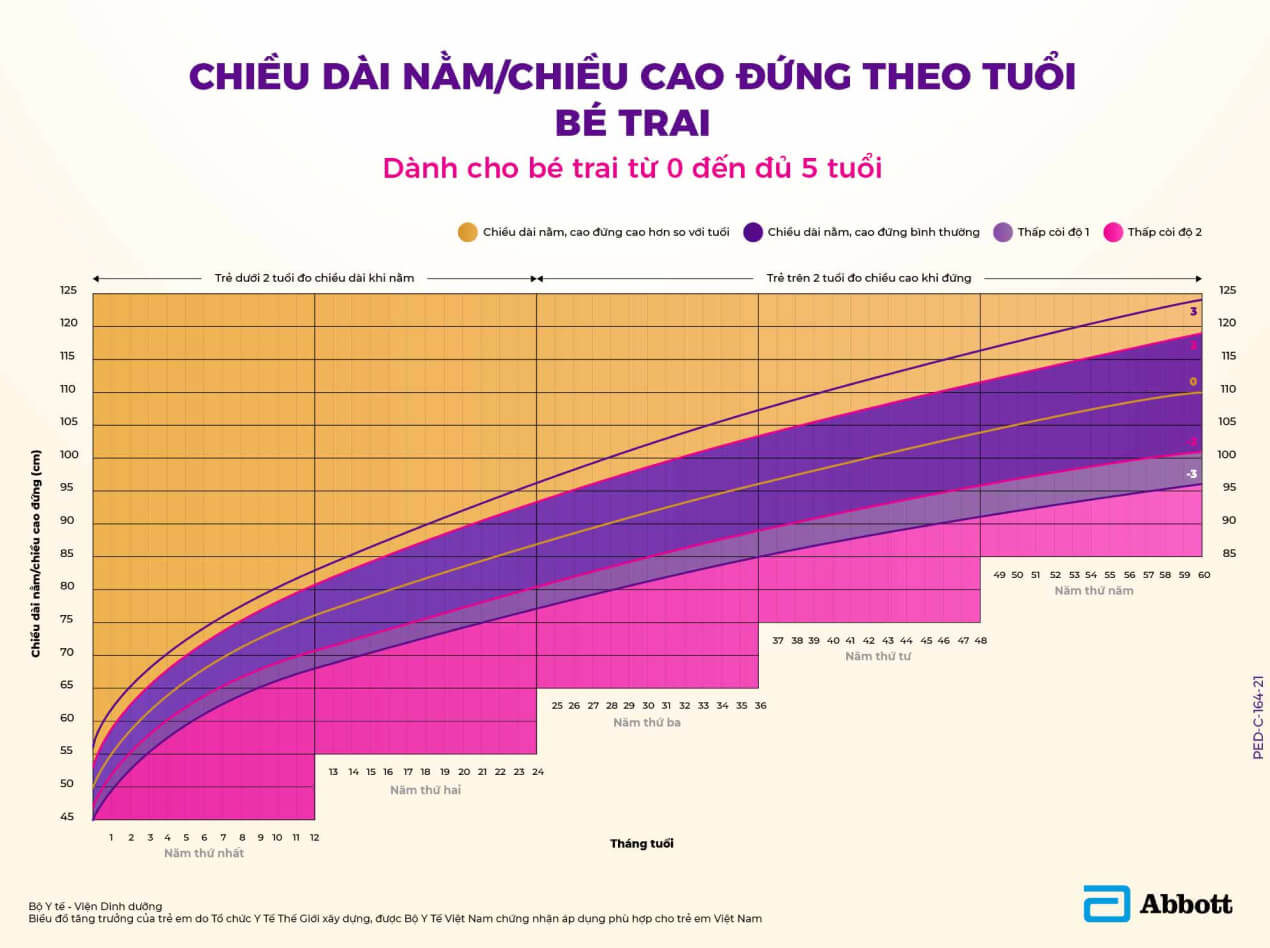 Nếu điểm giao nhau nằm trong vùng màu tím là bé có chiều dài/ chiều cao bình thường so với tuổi.